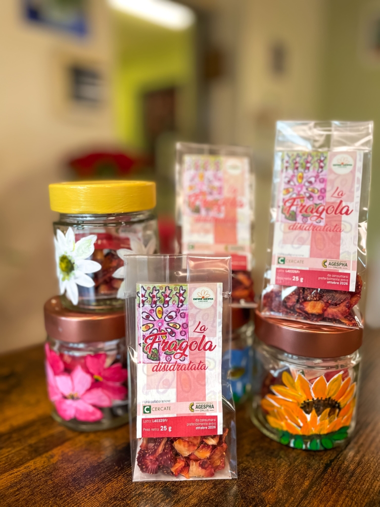Accanto alla verdura della rete solidale, trovano spazio anche i prodotti del laboratorio Agespha “Coltiva la Rete”, come fragole, mirtilli e ciliegie.